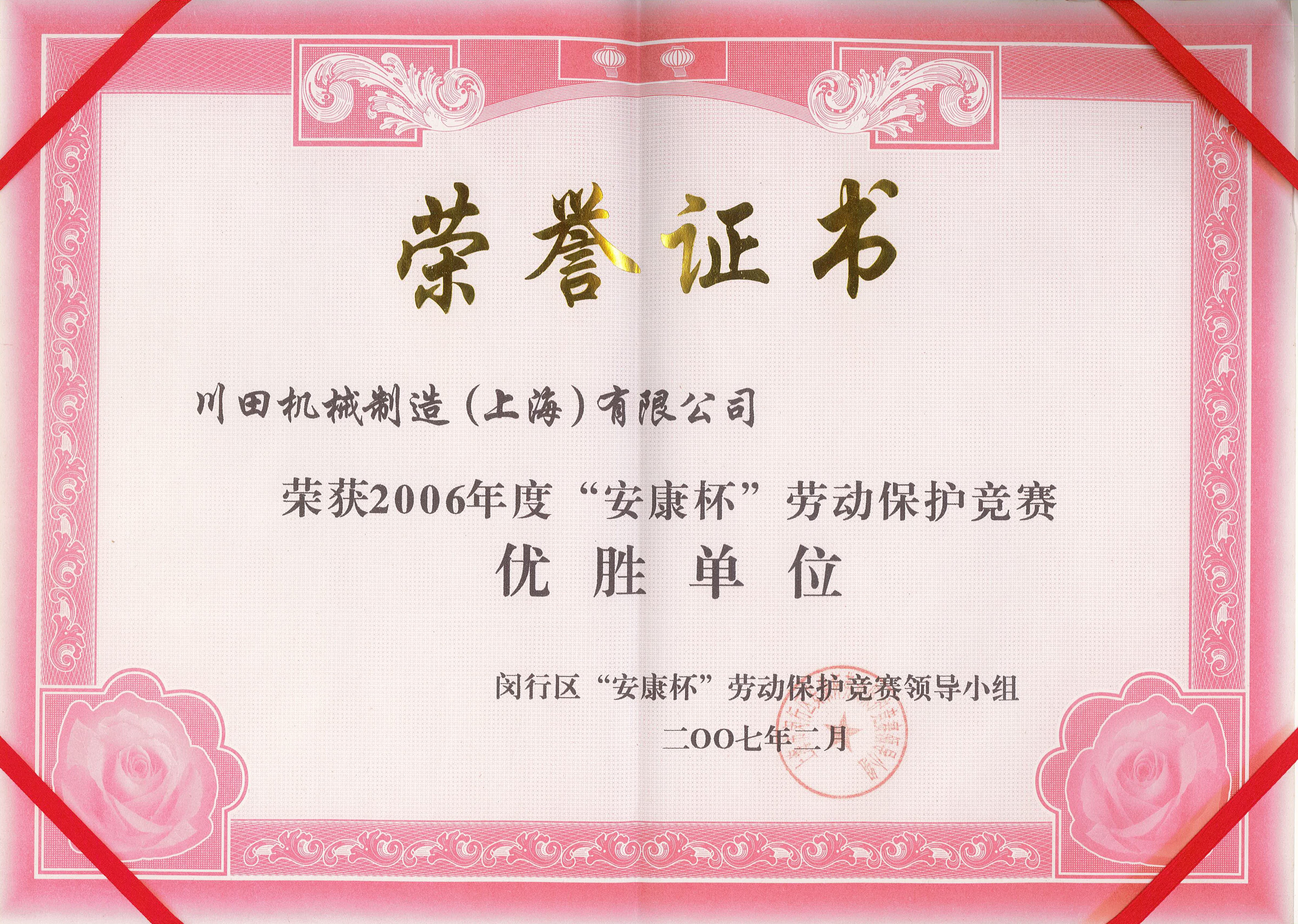 2006年度閔行區(qū)労働保護(hù)競技會(huì)優(yōu)勝賞