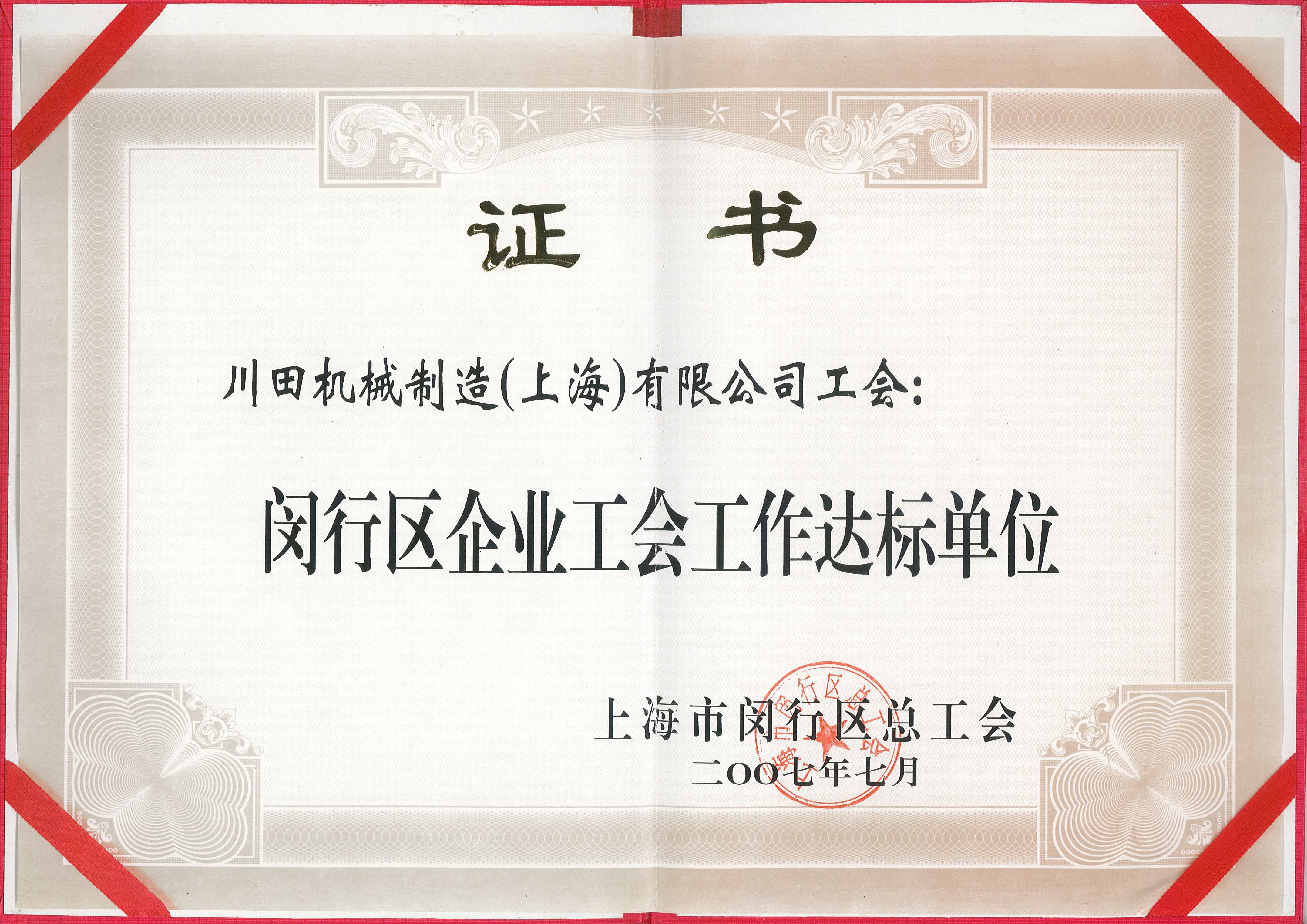 2007年度閔行區(qū)労働保護(hù)競技會(huì)優(yōu)勝賞